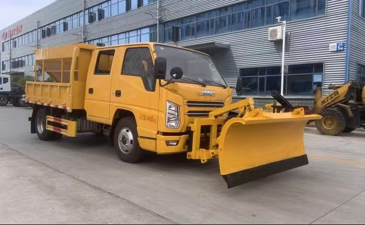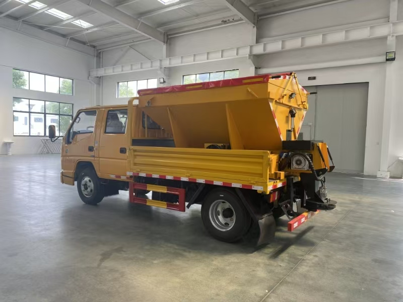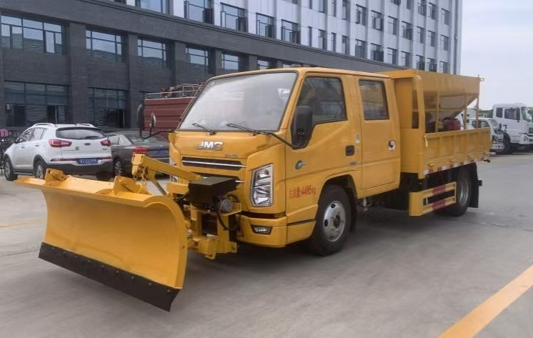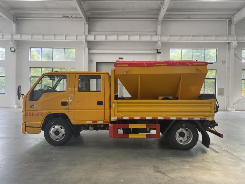上裝配置 箱體尺寸2600*2060*400mm,箱體內裝 3立方融雪撒布機,撒布機采用 V 型料倉,結構簡單可靠,使融雪劑自動落料,出料完全,無殘留。駕駛室可加裝2米除雪鏟或者2米除雪滾。
