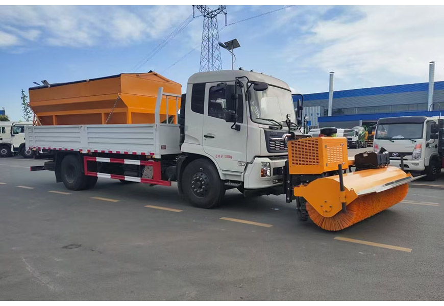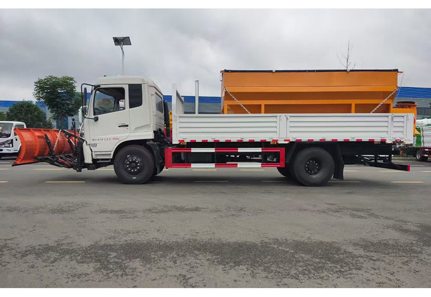 上裝配置 | 整體避障除雪鏟,夜間工作燈,車取力重型除雪鏟(左右雙液壓驅動)可搭配8立方或者10立方融雪撒布機(獨立柴油動力,鏈條刮板輸送,采用V型料倉,頂部帶防雨罩,折疊式不銹鋼撒布盤)3-3.5米雪鏟、3-3.5米雪鏟及撒布機均采用集成按鍵駕駛室操作。 |
