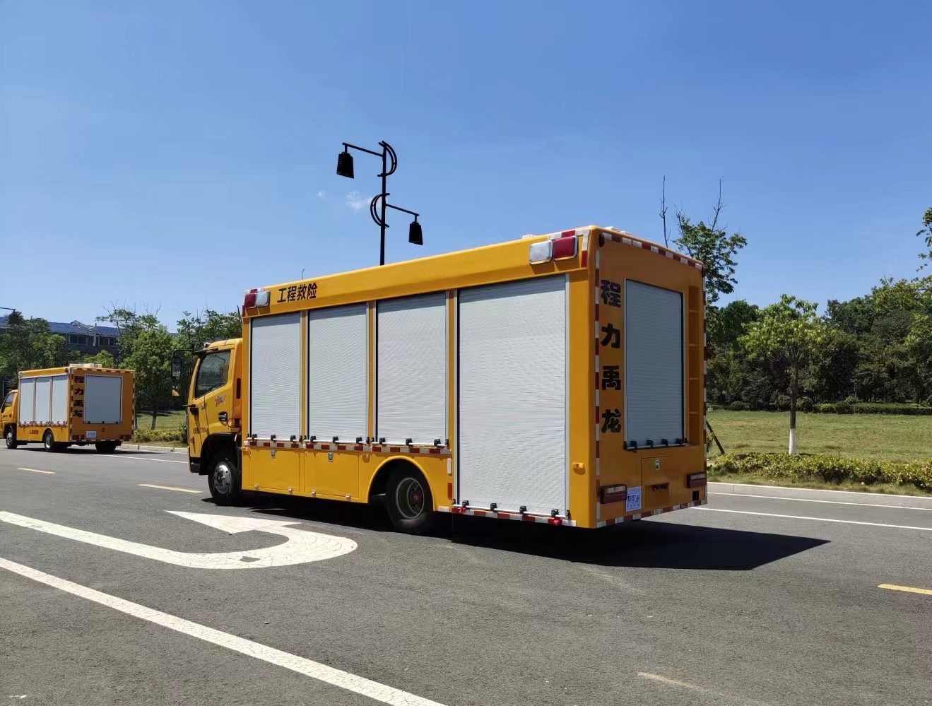 上裝配置 | 1、廂體外形尺寸根據實際公告標準。 廂體:具備運輸、防雨、防火、阻燃、防塵、防銹、降燥,隔震、長期抗震結構。外部鋼材為優質冷軋鋼板,表面處理平整,內襯優質冷軋鋼板折彎骨架,強度牢固,配重合理。 2、廂體一體化鋼體結構設計, 頂部平坦。廂體采用骨架式夾層形式,外蒙皮采用厚1.5mm優質防銹處理的汽車專用冷軋鋼板,中間骨架采用防銹處理后的鋼管焊接,頂層、側圍內、外層之間填充長時間使用對人體無害的防火阻燃環保吸音棉,外層鋪蓋一層阻燃金屬布,內飾采用0.8mm厚網孔板。底板采用鋼結構底框架,上表面鋪厚2mm花紋鋼板。 3、車輛廂體采用整體包覆式,廂體兩側下部設置裙邊式,全封閉式結構,頂部為圓弧型,尾部有轉向燈、剎車燈、尾燈、霧燈,箱體表面光滑平整。車廂靠駕駛室前部為休息室,休息室內帶折疊坐椅及折疊桌,往后為機組室,機組室左、右側布置進排風百窗,設置機組檢修門一個,下置登車踏步梯,車廂后端為后為卷簾門。右側排風百葉窗下部為維修觀察艙門。左側下圍設置有工具箱及功能艙門等。右側下圍設置有汽車油箱艙、液壓控制艙等。 4、車廂尾部配置標準儲物貨架讓出水帶、加長電纜等附件存放有序、互不干涉,讓緊急排水搶險變得更加快捷、有效。 5、廂體噴漆:工程黃,與車頭同一顏色; 6、最終的門數,形式,打開方式嚴格按照合同要求依據程力公告生產; |