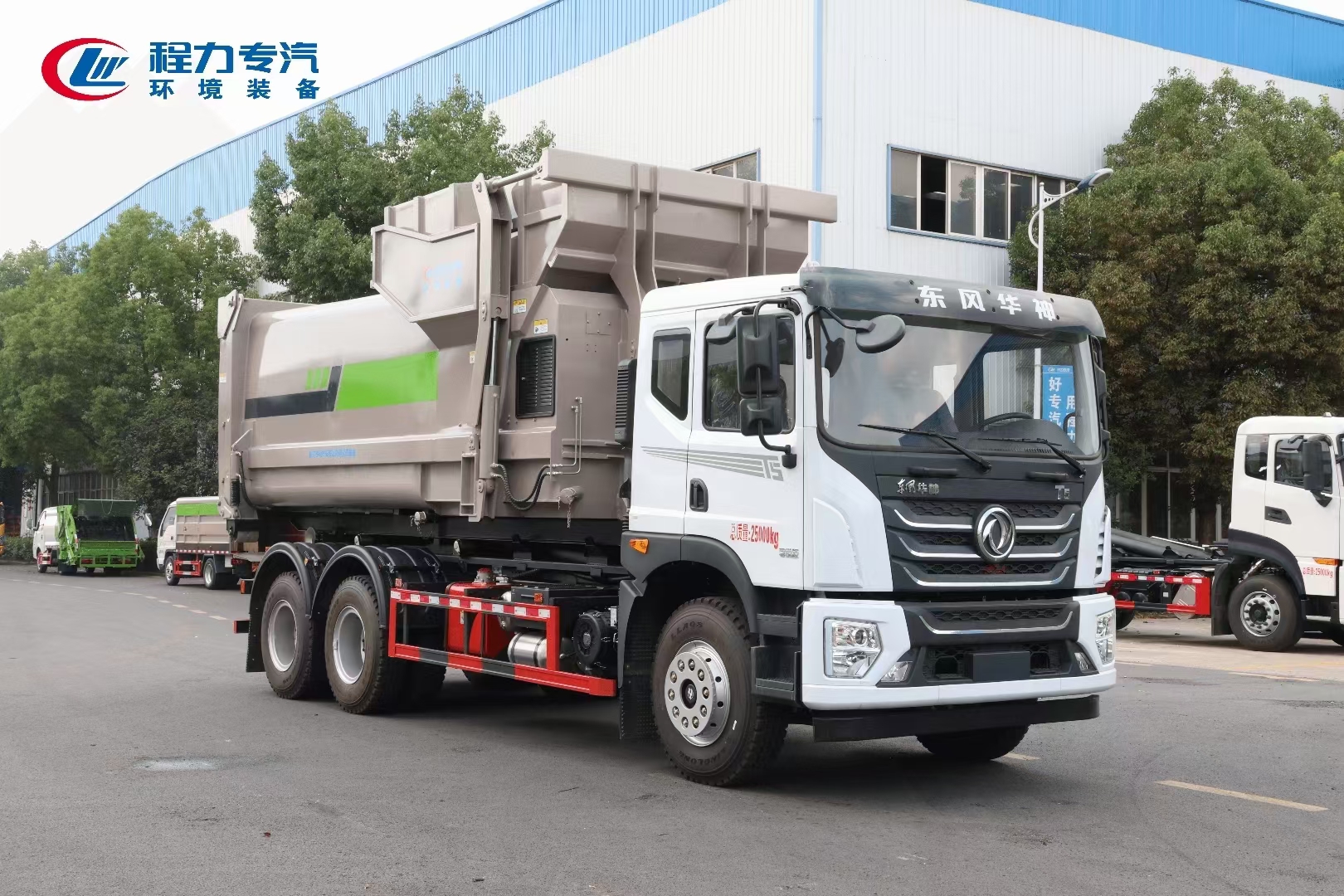 程力專汽東風(fēng)華神后雙橋勾臂垃圾車+移動(dòng)壓縮箱
