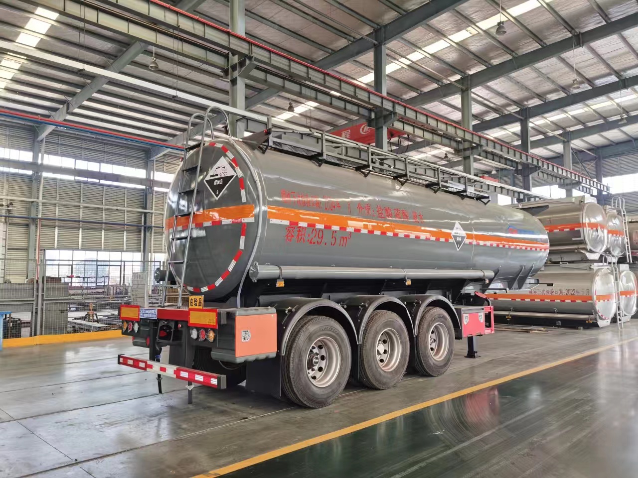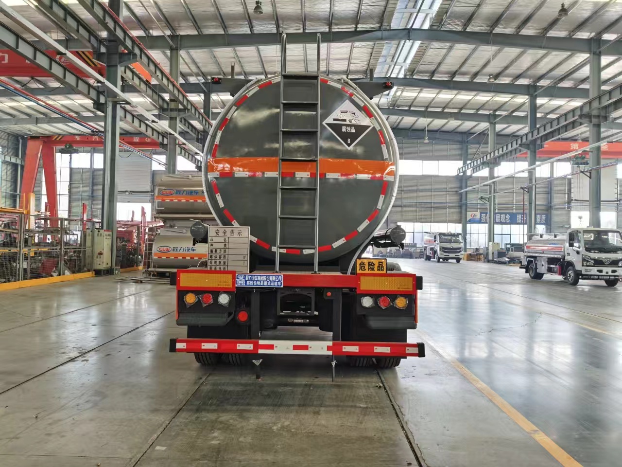 上裝配置 罐體有效容積29.5立方,襯塑厚16MM,Q235碳鋼板制作罐體厚4.2MM,封頭厚4.75MM,2個塑料進料口,一個不銹鋼安全閥,后尾部左右自流(配1個4寸不銹鋼襯氟海底閥帶語音報警裝置,2個3寸四氟球閥帶出口)行走部分標準配置:三軸半掛,采用10噸富華車軸三軸帶盤式制動,EBS,三軸空氣懸掛。玲瓏12R22.5真空輪胎12條。普通鋼圈。28噸單動支腿。一工具箱、一備胎架。其它配置按廠標,出整車合格證,罐檢報告及上戶發票.